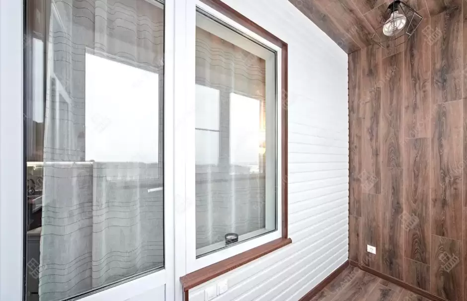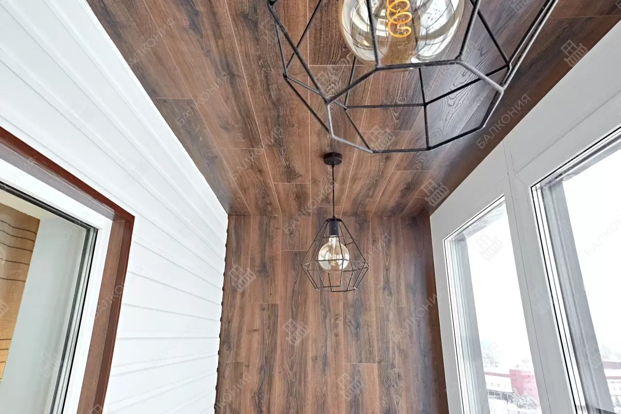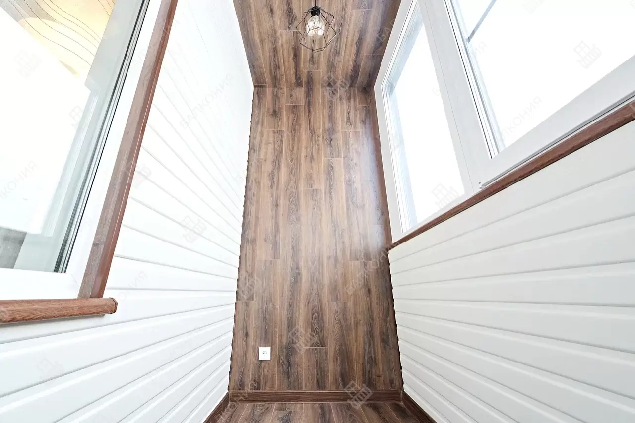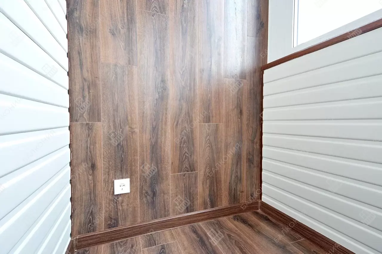 Дизайнерская отделка ламинатом с вагонкой под покраску. Реализованы работы по отделке балкона с утеплением в многоквартирном доме. Сделано теплое остекление. Отделка стен комбинированная ламинат плюс вагонка из липы с премиум покраской в два слоя, пол ламинат. Проведено электричество, подключен теплый пол. Материал предоставлялся компанией согласно пожеланиям заказчика.